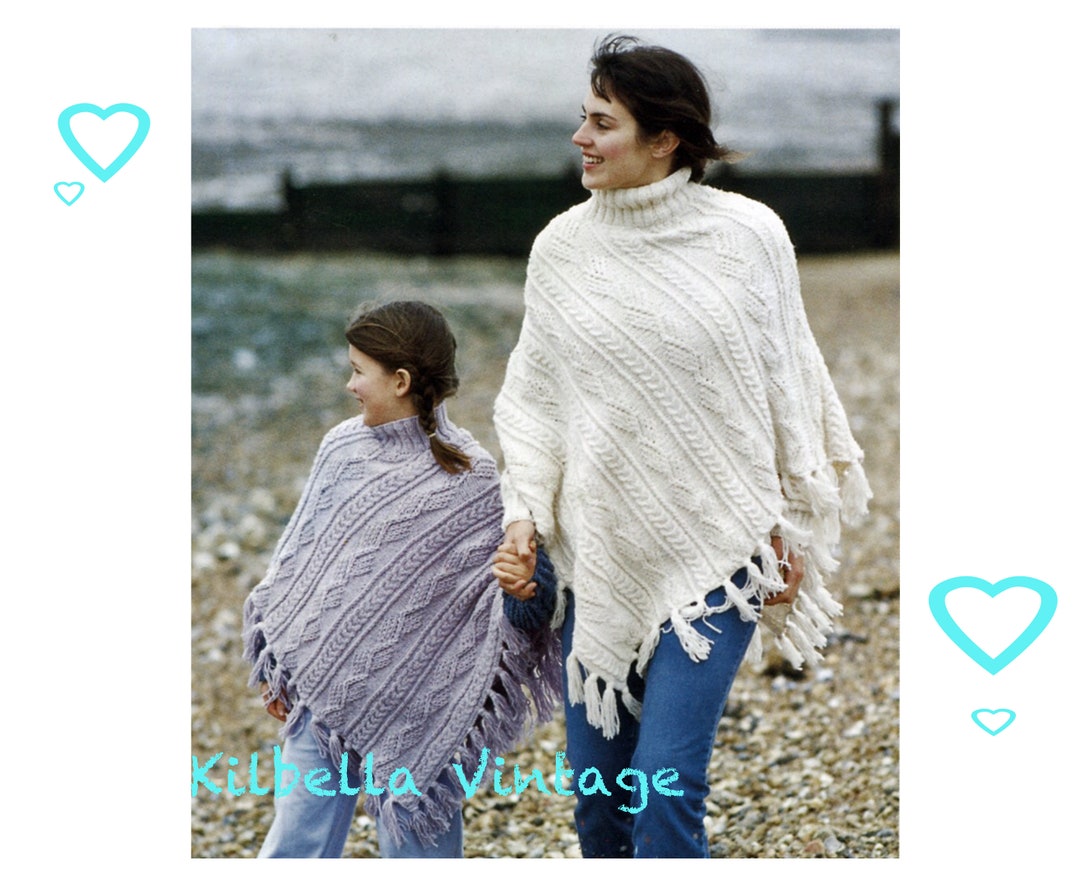 Poncho Knitting Pattern Girls Women Aran Poncho Pattern Etsy De